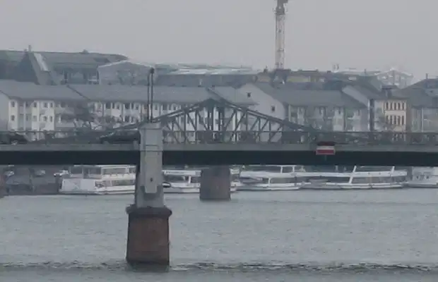 The Iron Bridge 'Eiserner Steg' is more than one hundred years old. It is a bridge over the river Main. It's easy to walk there from the Old Town [/ B] of Frankfurt, along the River Walk. Frankfurt is not very large. Between this and the Peace Bridge (Friedensbrücke) there are 13 museums, so the area is called The Museum Bank. [/ B]
