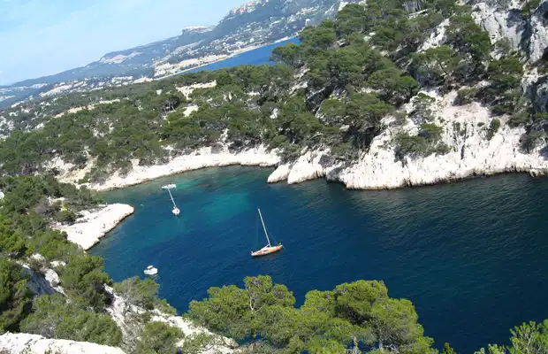 The Calanques are a series of coves in the south of France. There are in a large natural park called Parc Naturel des Calanques, which covers more than 20 miles of pristine coastline between Marseille and Cassis. You can go from either city to walk around this beautiful park, between two cliffs, there is a beautiful cove with white sand and clear water. Yes, the water is usually fresh and perfect for people who just traveled a couple of hours to reach them. The Calanque Port Pin is one of the closest to Cassis. You can reach it in less than an hour away. Don't forget your water and sunscreen since it's a natural park and they don't sell things there.